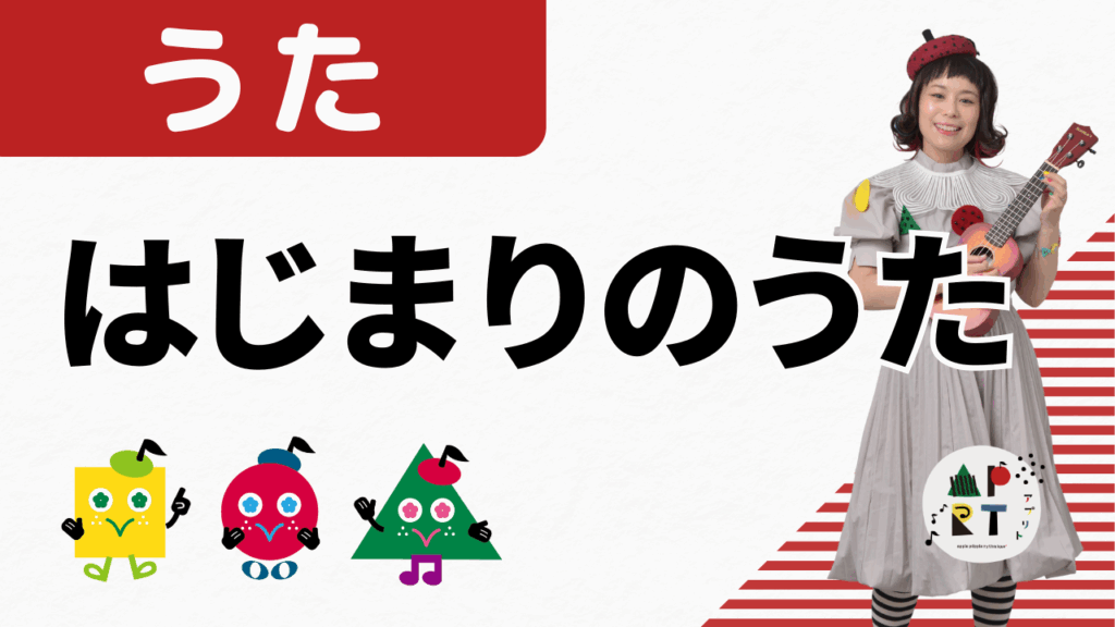 初めてレッスンを受けるお子さんにとっては【注目】の役割を担っています。「何が始まるの?」って感じでこちらに注目してくれます。はじまりのうたはお子さんに呼びかけるような歌詞にしているのでなんとなく静かに聴いてくれることが多いです。歌詞はこちら。